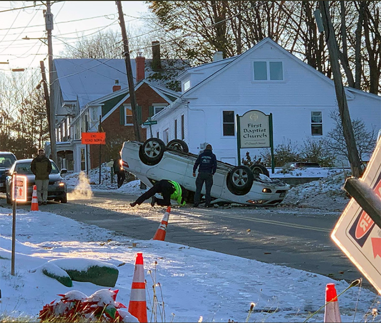 A juvenile driving up Church Street Wednesday was not injured when her car struck a pole and flipped on its roof.