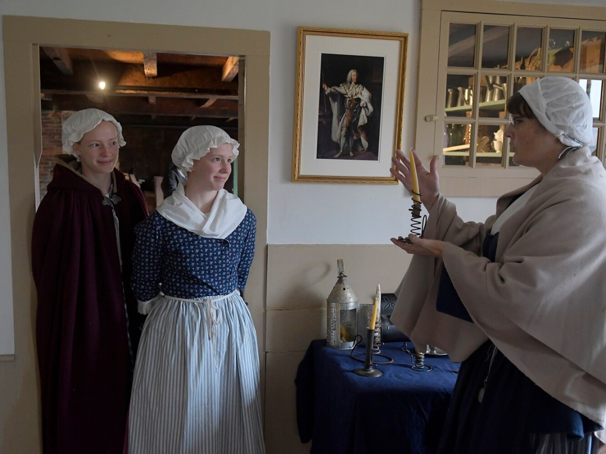 While Sunday’s rain put a damper on some activities, reenactors at Old Fort Western were able to show some of the activities that the settlers along the Kennebec River would have been doing more than 260 years ago to prepare for winter.