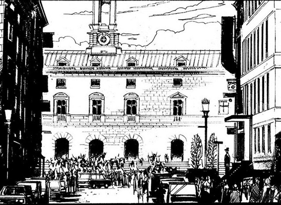 Sean Murphy, who moved to the city a year ago, used City Hall, weathered wharves, Old Port cobblestones and more to depict the fictional Gotham City.