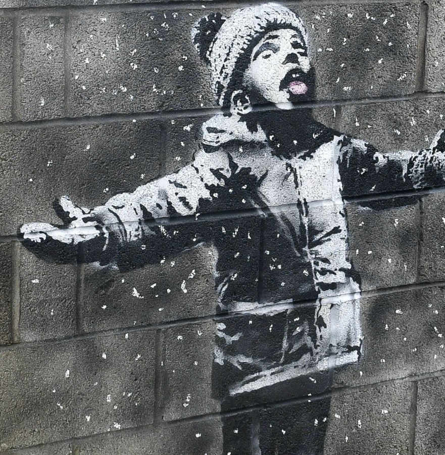 The mural, purchased by an art dealer in eastern England, was given its own security guards after appearing on the garage of a local steelworker.