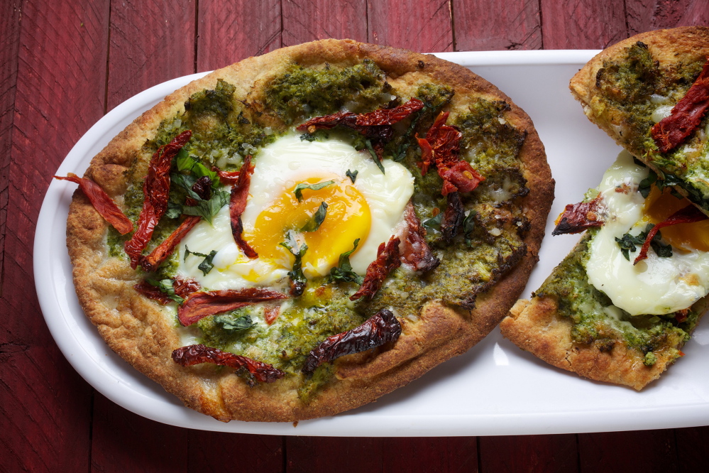 Whip up pesto, sun-dried tomatoes and egg on flatbreads for an easy and satisfying dinner.