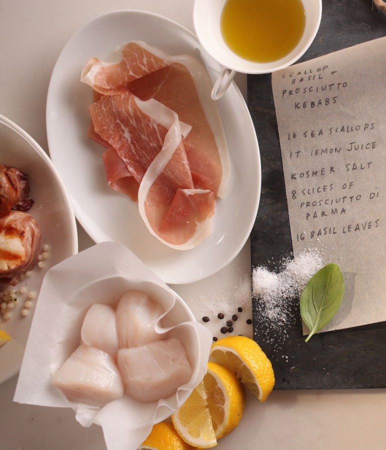 Marinated scallops wrapped in prosciutto great for grilled kebabs