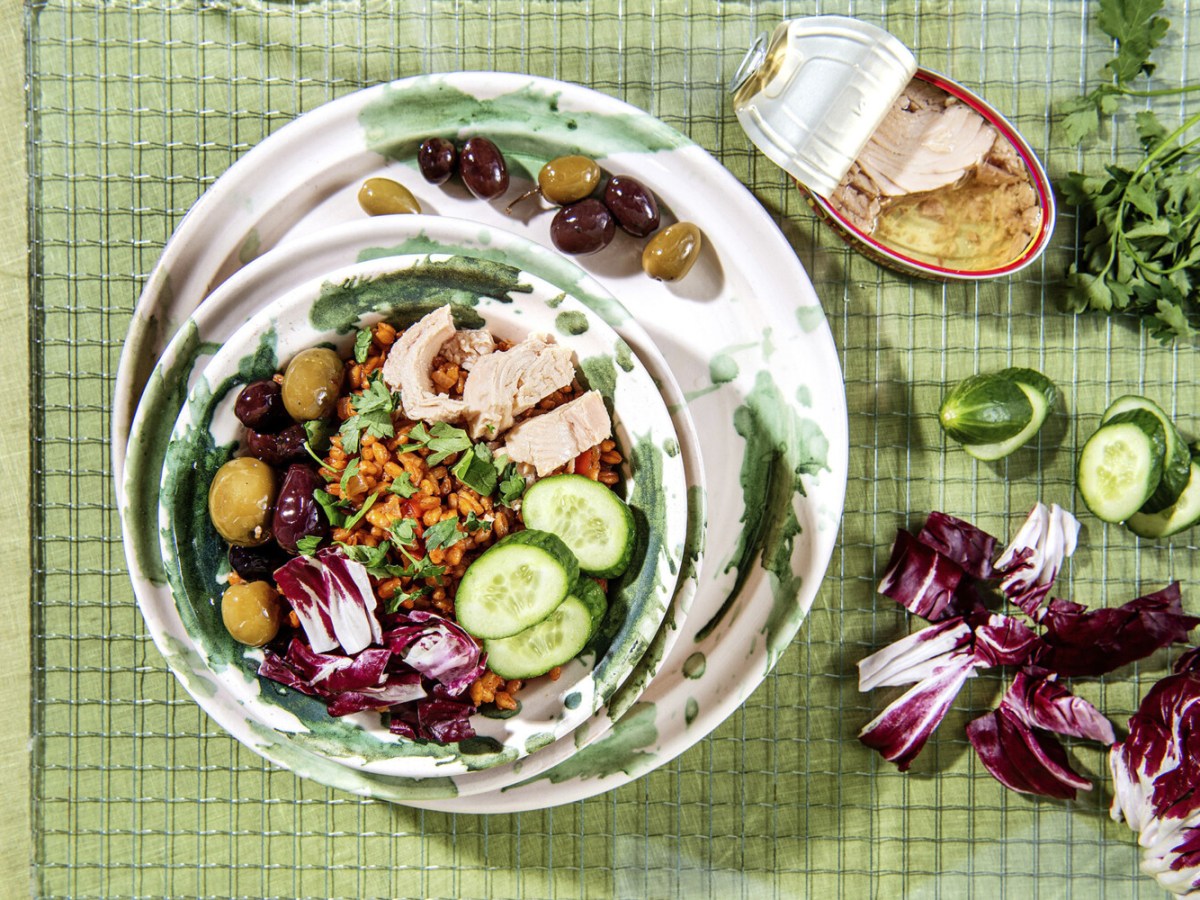 Simmering the grain in tomato juice soaks it with a savory tang.
