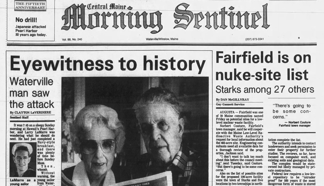 Dec. 7, 1991: Waterville man tells his eyewitness account to Pearl Harbor attack in 1942, and could Fairfield be home to a new low-level nuclear waste facility?