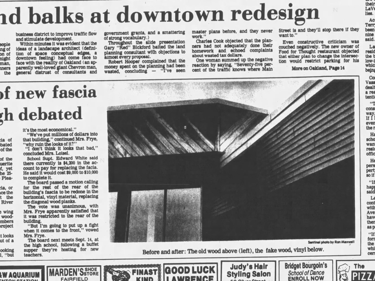 Sept. 4, 1981: More than 50 fill Oakland town office to balk at downtown redesign plans, Oak Grove-Coburn School sale snag gets resolved, and ‘look’ of new fascia at Waterville Junior High debated