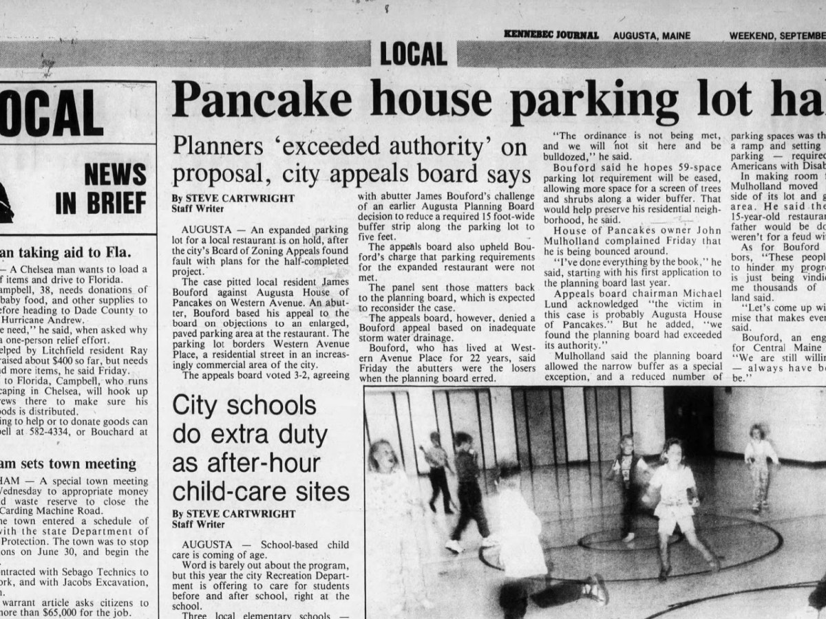 Sept. 5, 1992: Expanded parking lot for Augusta House of Pancakes put on hold, Chelsea man wants to aid Hurricane Andrew victims, and Augusta schools becoming child care centers for kids after school