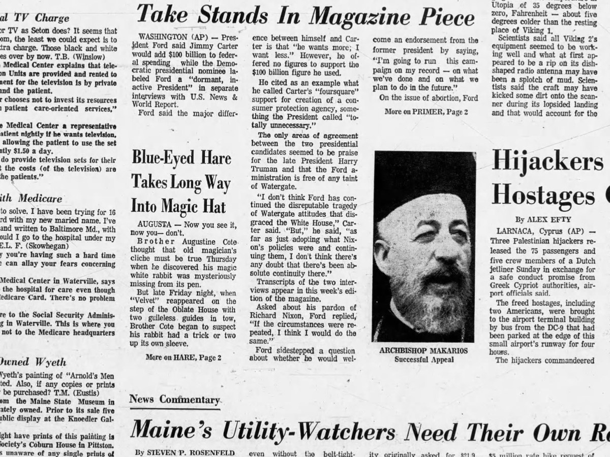Sept. 6, 1976: ‘Now you see it, now you don’t’ for one white rabbit who mysteriously disappears in Augusta, Muskie studies traces electricity use in Maine, and how to get rid of bats and more