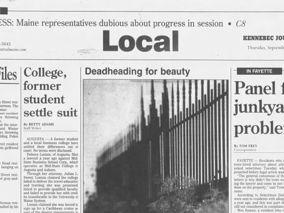 Sept. 7, 2000: Chelsea woman who has multiple sclerosis suing Funtown U.S.A. for $2 million, Kennebec Historical Society to show old photographs during open house, and Fayette’s got a lot of junk apparently