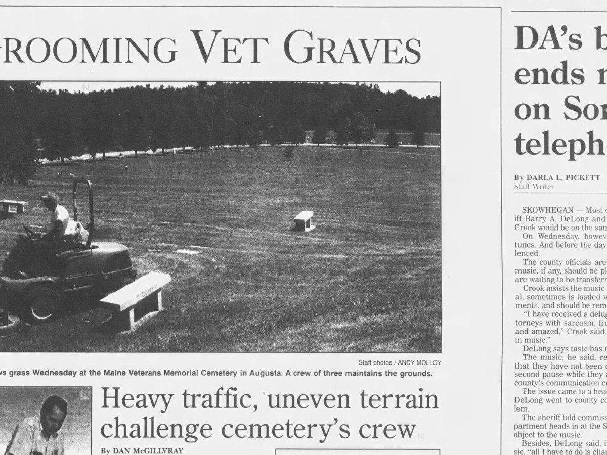 Aug. 2, 2001: Somerset County Sheriff, district attorney tangle about music on lines of phone calls waiting to be transferred, wrecking crew dismantles 3 downtown Augusta buildings, and the day in the life of a cemetery mower in Augusta