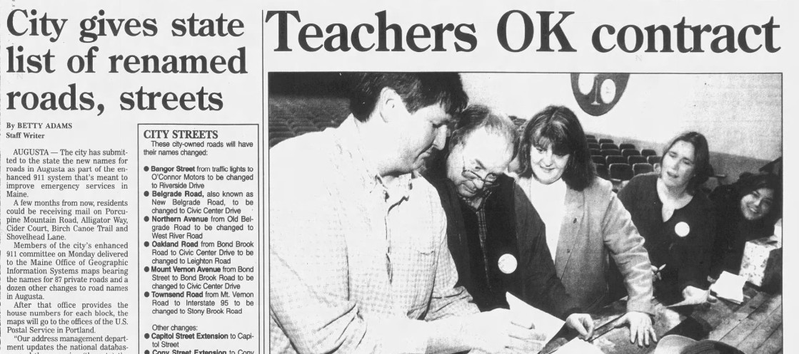 Jan. 16, 2002: Thanks to enhanced 911, these Augusta roads & streets will change names. Also, Augusta teachers accept contract after 11 months, and report shows progress in technology growth