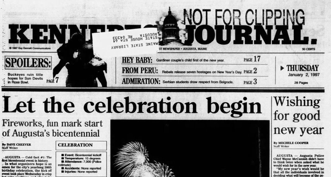 Jan. 2, 1997: Fireworks & fun mark start of Augusta’s bicentennial celebration, two local police chief’s wish for ‘good new year’, and Maine Yankee battles with state