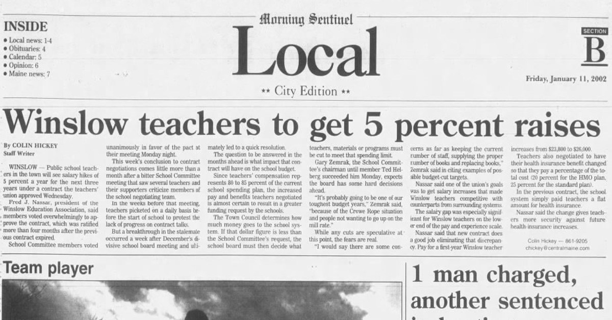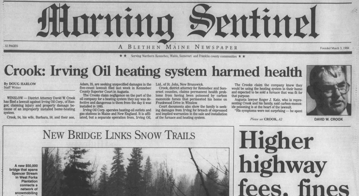 Jan. 5, 2001: District attorney files lawsuit against Irving claiming injury & property damage, new bridge in West Forks links snowmobile trails, and Gov. King wants commercial vehicles fines in state