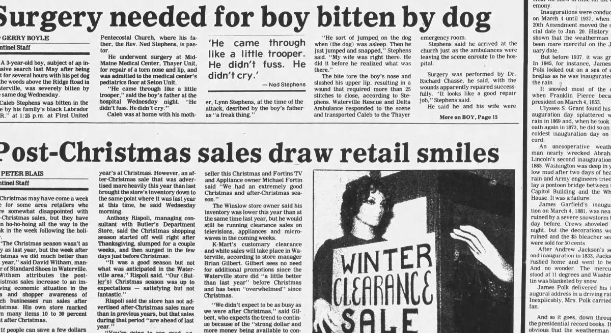Jan. 3, 1985: Boy lost in woods with dog for hours last May bitten severely by same dog, and chimney fire damages two Benton homes