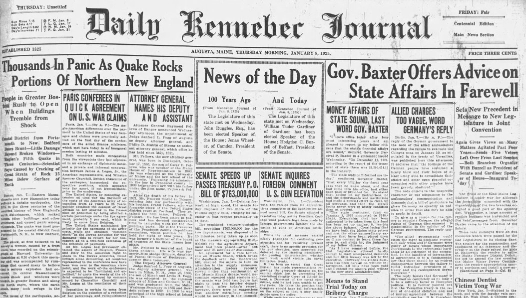 Jan. 8, 1925: The centennial issue of the Kennebec Journal is ‘filled with historical articles, photos, and interesting data’