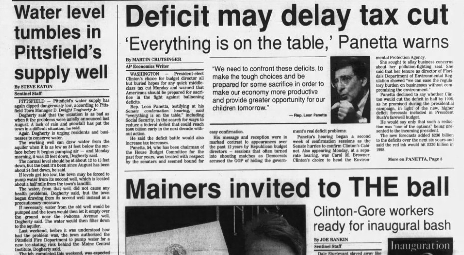 Jan. 9, 1993: Water levels are dangerous low in Pittsfield’s supply well, and Oakland woman among 400 across nation invited to attend president-elect Clinton’s ball