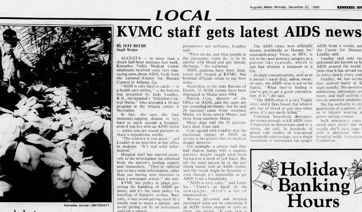 Dec. 22, 1986: Kennebec Valley Medical Center employees get ‘reassuring’ news about AIDS virus from US CDC, and Fayette needs a solution for town’s garbage