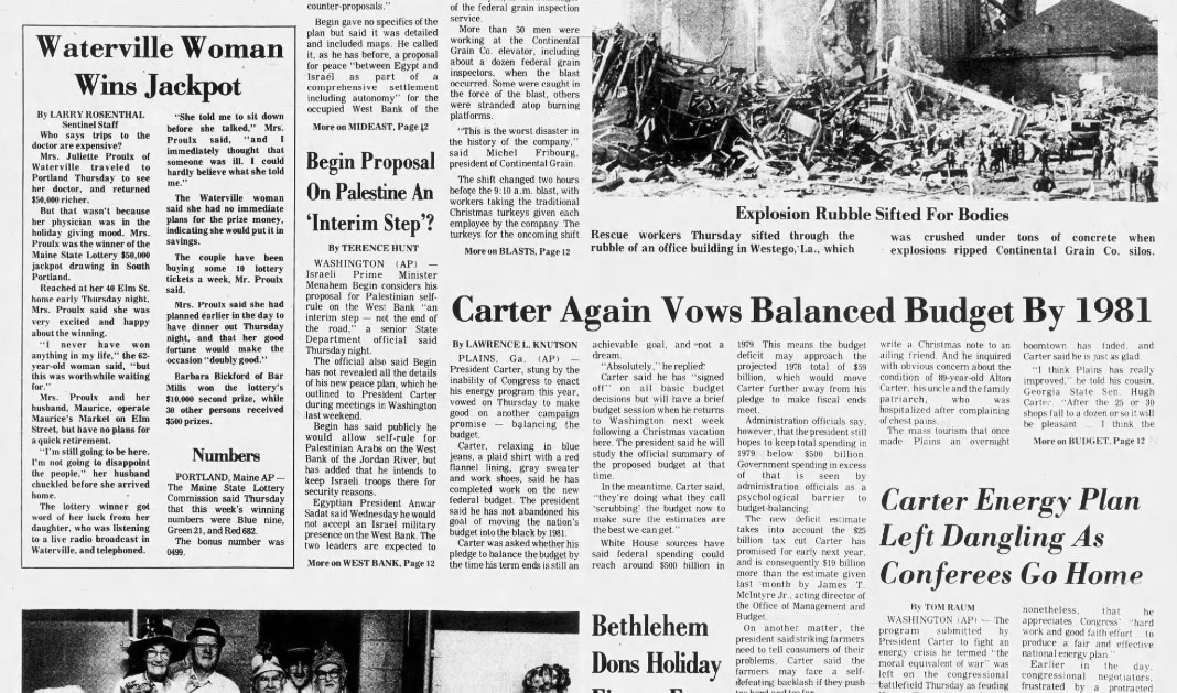 Dec. 23, 1977: Waterville woman wins $50,000 jackpot in South Portland, and the Vassalboro Senior Citizens Puddin’ Head Band put on a show
