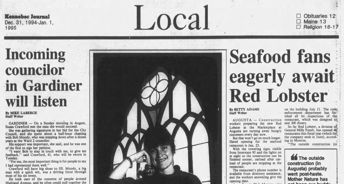 Dec. 31, 1994: Seafood fans eagerly await Red Lobster restaurant in Augusta, incoming councilor in Gardiner will listen to her people, and meet this Hallowell librarian and her 1-woman show