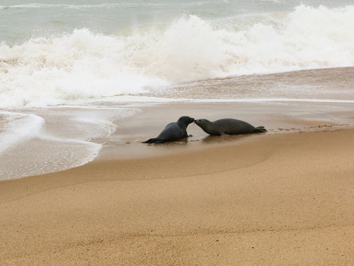 Each of the 3 seals is now about 4 to 5 months old and weighs around 50 pounds.