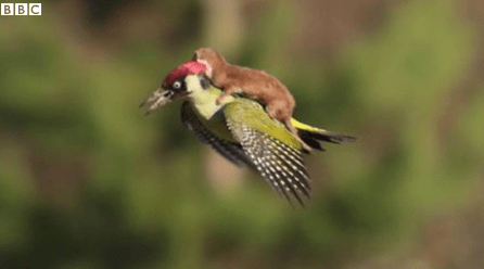 Photo of weasel riding woodpecker has social media all atwitter
