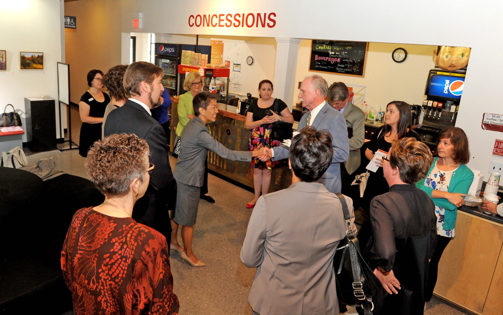 Jane Chu visited the city’s Railroad Square Cinema, which benefited from an NEA grant, on Tuesday.
