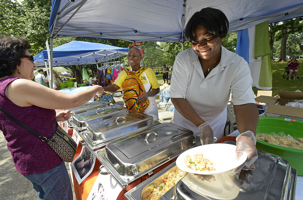 Visitors sample food from Latin America, the Caribbean, the Middle East and United States at Saturday’s event, designed to highlight diversity and multiculturalism.
