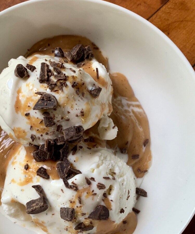 Rather than waste water to wash used food jars and tubs, first make vinaigrette, dessert sauce, sweetener for tea and more right in the containers.