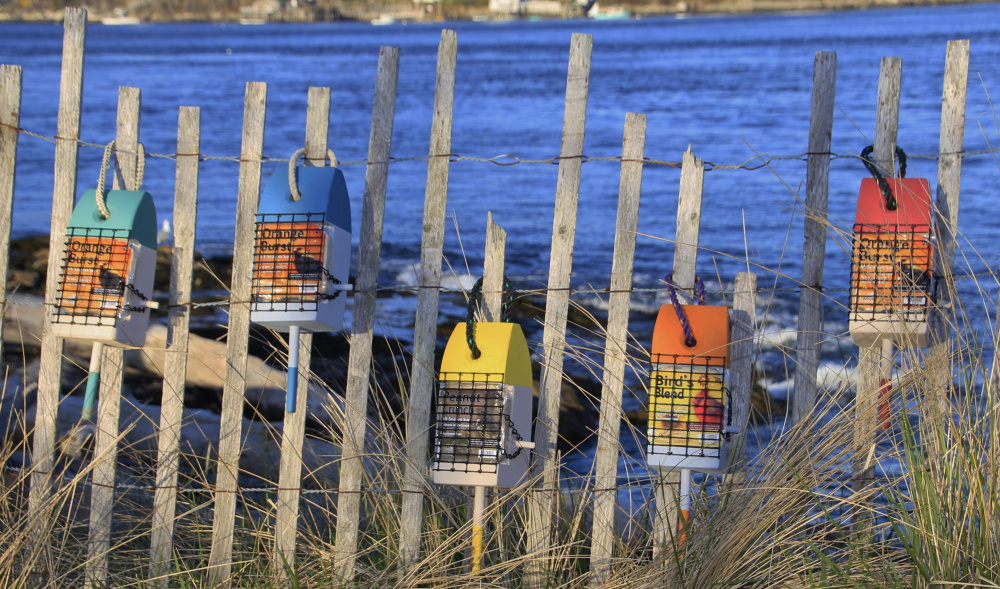Suet feeders from the Lobster Buoy Birdhouse Co. attract woodpeckers, chickadees, nuthatches and other hungry birds – and they’re environmentally friendly.