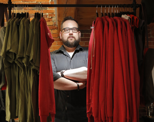 Jared DeSimio of Brunswick sells his garments at Portland Trading Co.