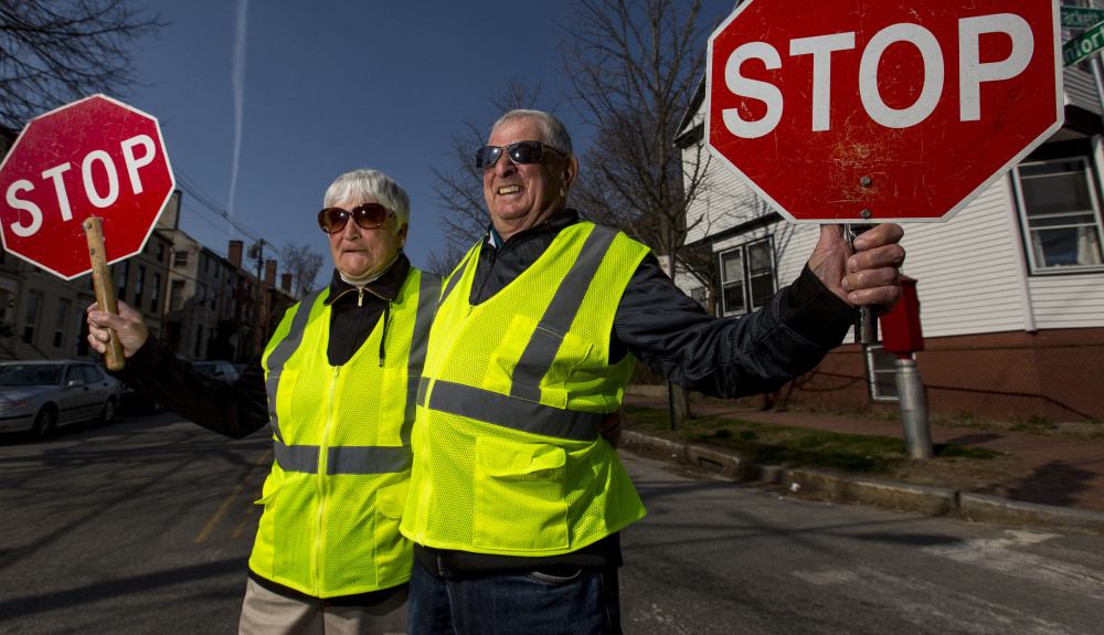 Legwork: No matter the weather, crossing guards help children get to school safely