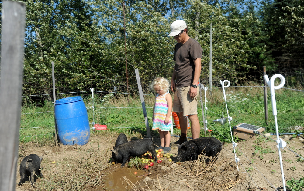 At Palermo farm, rare guinea hogs from Unity College help till soil