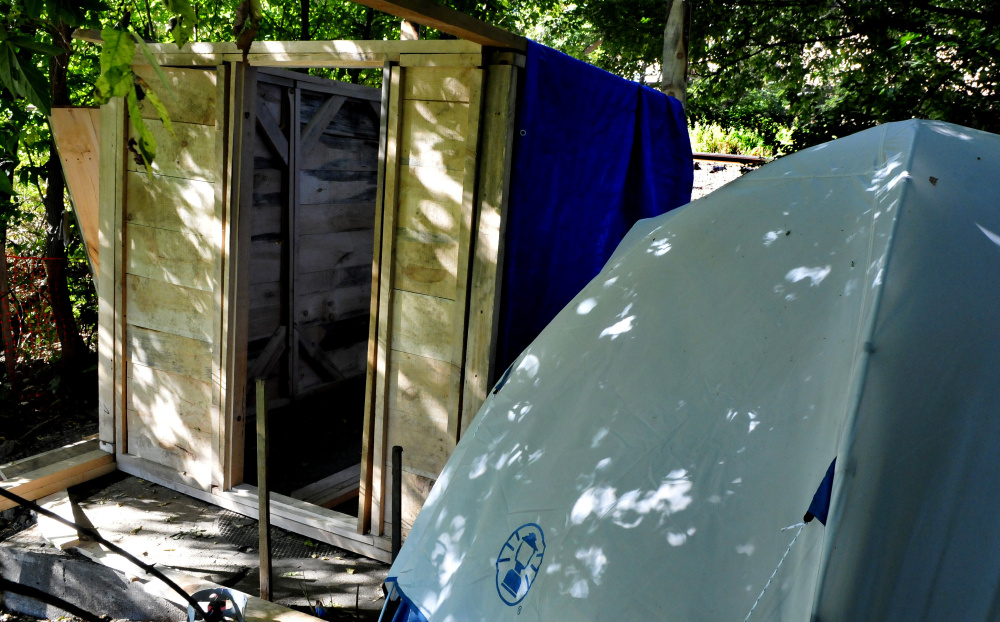 Vaughan Orchard, 56, of Waterville, has lived in a tent by the river and was building a hut on railroad property when he was arrested Wednesday, police said.