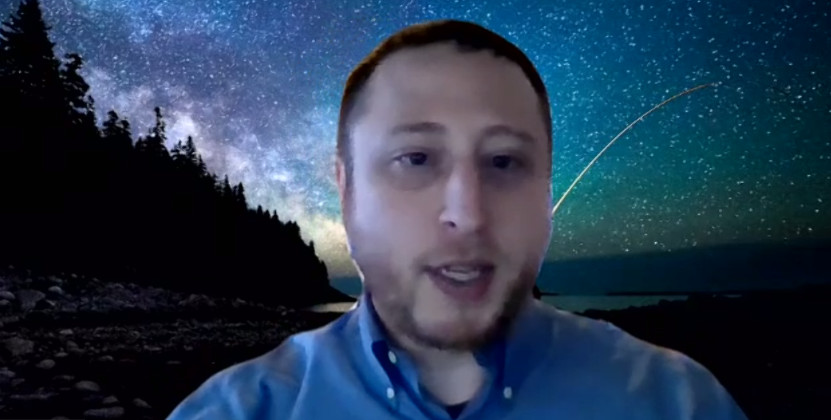 Seth Lockman, communications director for Brunswick-based bluShift Aerospace, addresses Rotary Club of Waterville during virtual meeting.