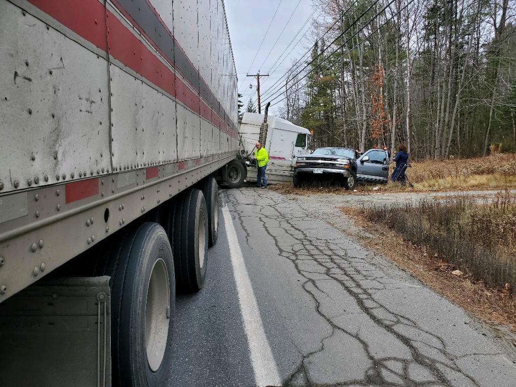 Pickup truck, tractor-trailer collide on Main Street in Madison