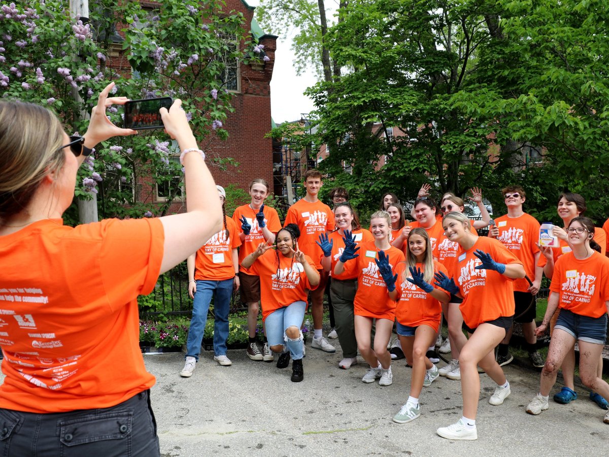Lauren Arnold, the principal at Gardiner Area High School, joined GAHS seniors who planted flowers in Gardiner Thursday morning. All photos by Anna Chadwick/Morning Sentinel.