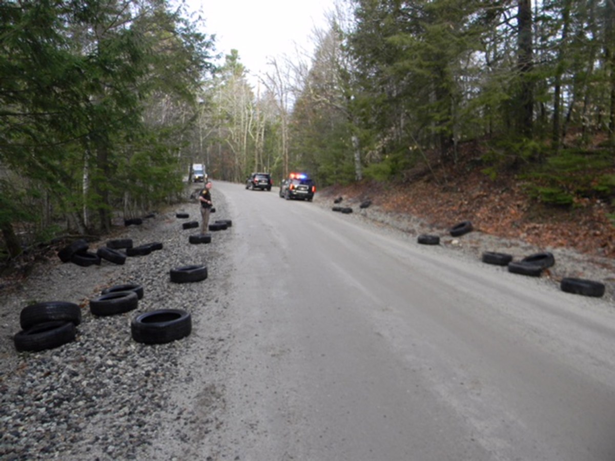 Police say the tires took up a large portion of the travel lane and are looking for the culprit.