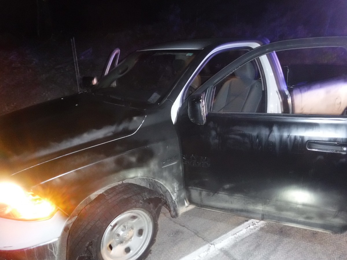 Spike mat stops another stolen U-Haul – painted black to hide logos