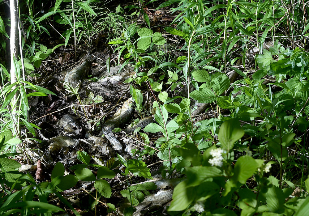 The fish were left on the ground Friday afternoon behind Pleau’s Market.