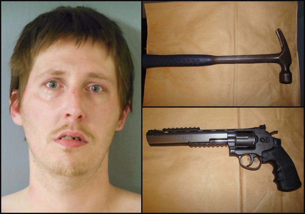 Matthew Gray allegedly was intoxicated and waving a shotgun on Eaton Mountain Road before family members took the gun away from him, police said.