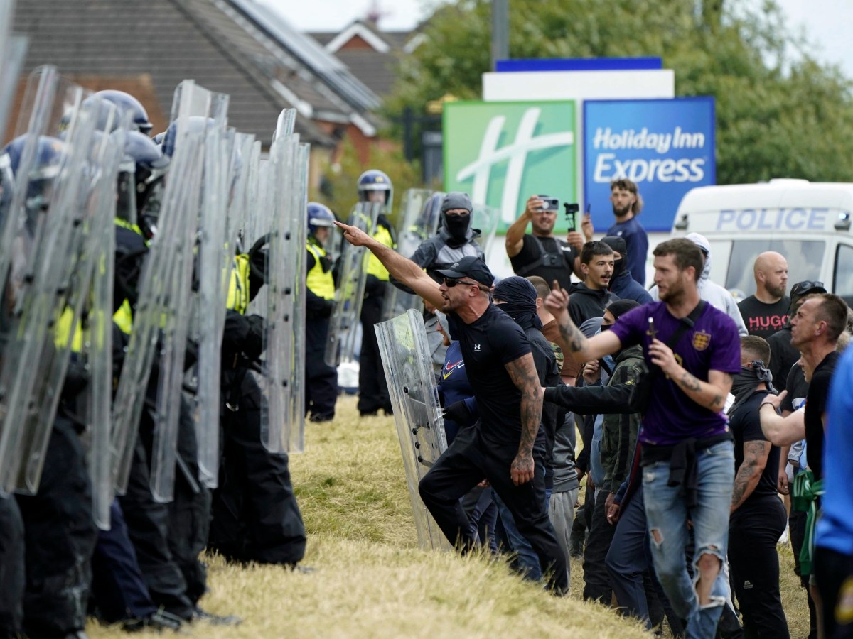 In the north of England town of Rotherham, police struggled to hold back hundreds of rioters who sought to break into a Holiday Inn Express hotel being used as accommodation for asylum-seekers.