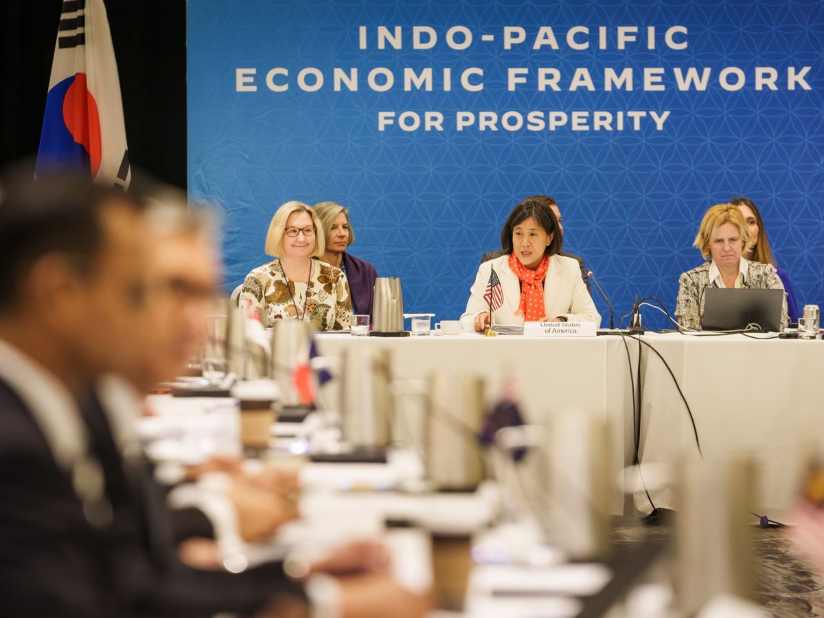 President Biden and leaders of 13 other countries involved in the Indo-Pacific Economic Framework on Thursday signed an agreement to communicate and cooperate more on issues related to supply chains.