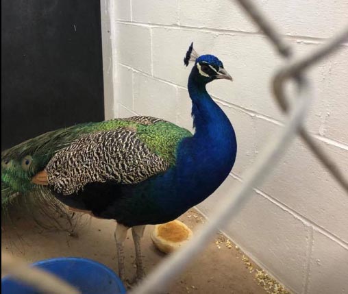 The colorful bird made an impression as he walked through yards and perched on railings.