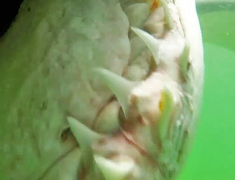 The video shows the shark’s teeth and even wrinkles on its tongue.
