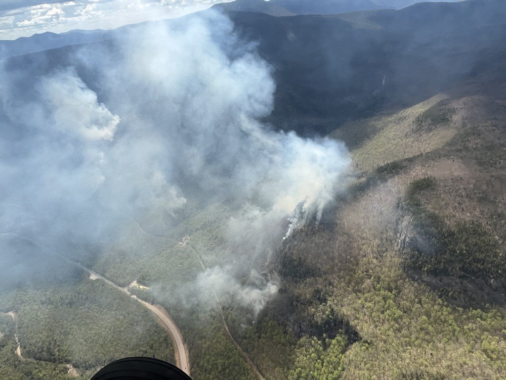 The fire is in Crawford Notch State Park, the White Mountain National Forest, and on private land.