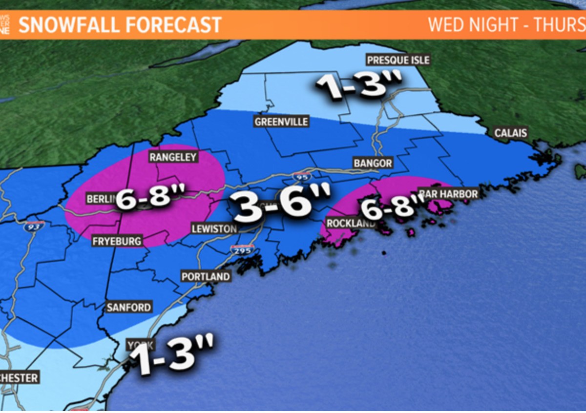 It’s a battle between the seasons: The County gets snow, while southwestern Maine ends up in the 60s.