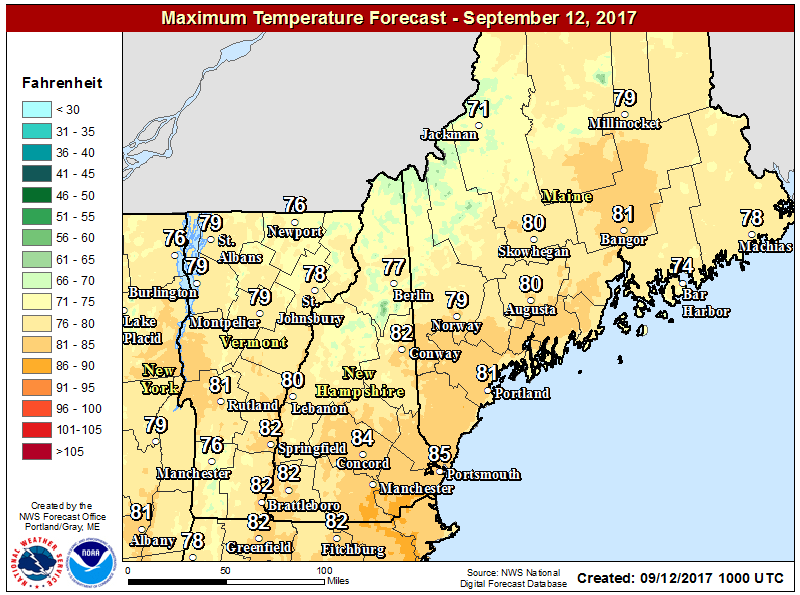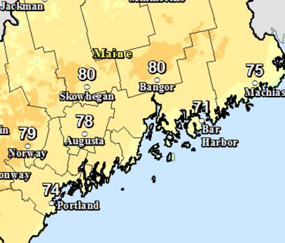 Yesterday many areas will reached near 80, but that will be final 80 degree day for a while. Starting today highs remain in the cooler mid-70s into the weekend.
