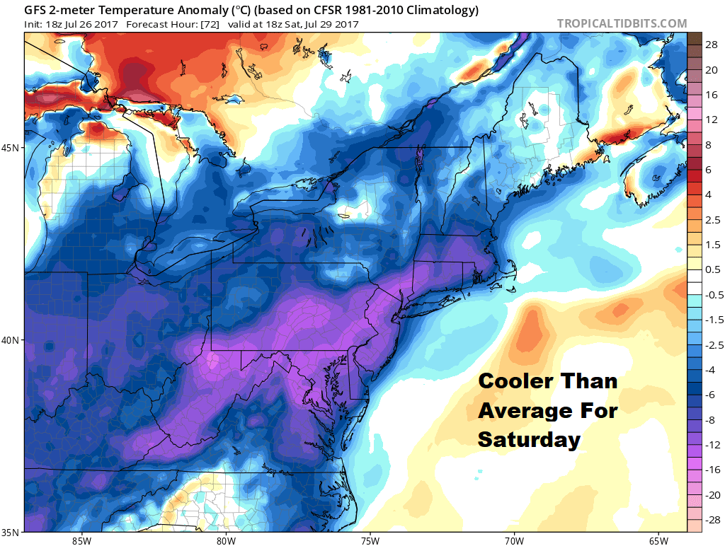 The week will be nice for those lucky enough to be on vacation but showers are included in the forecast.