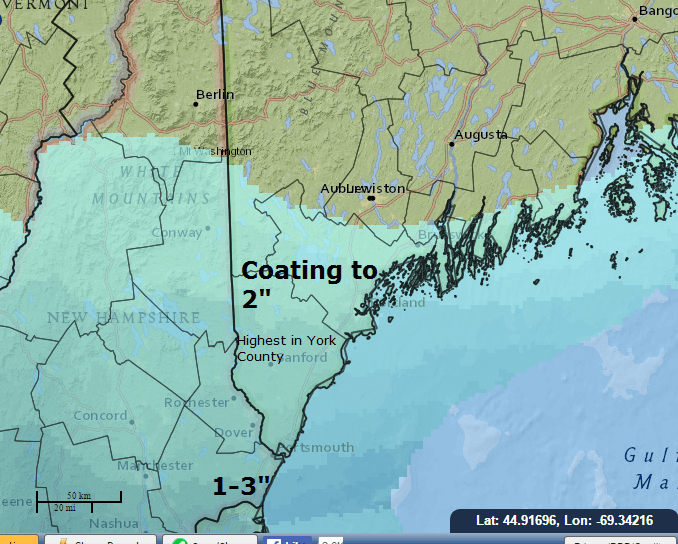 The snow arrived on schedule this morning, with the bulk of the accumulation is over by noon in Portland and mid-afternoon east of Rockland. The snow has fallen at rates of 1 to 2 inches per hour in several places after 5 a.m and allowed it to accumulate quite quickly. Already dry air is rapidly […]