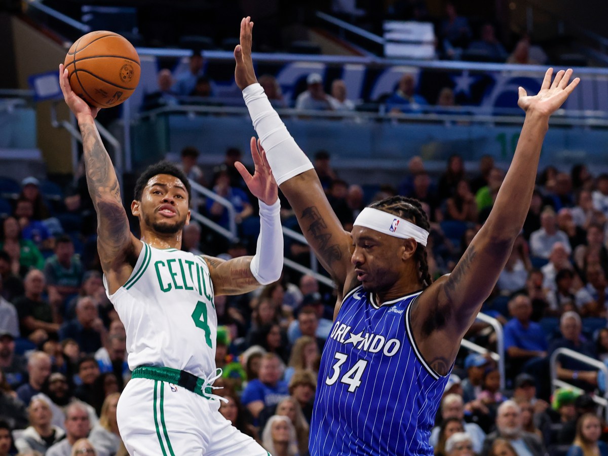 Brown scores 27 points and Boston makes key shots late in a win over Orlando.