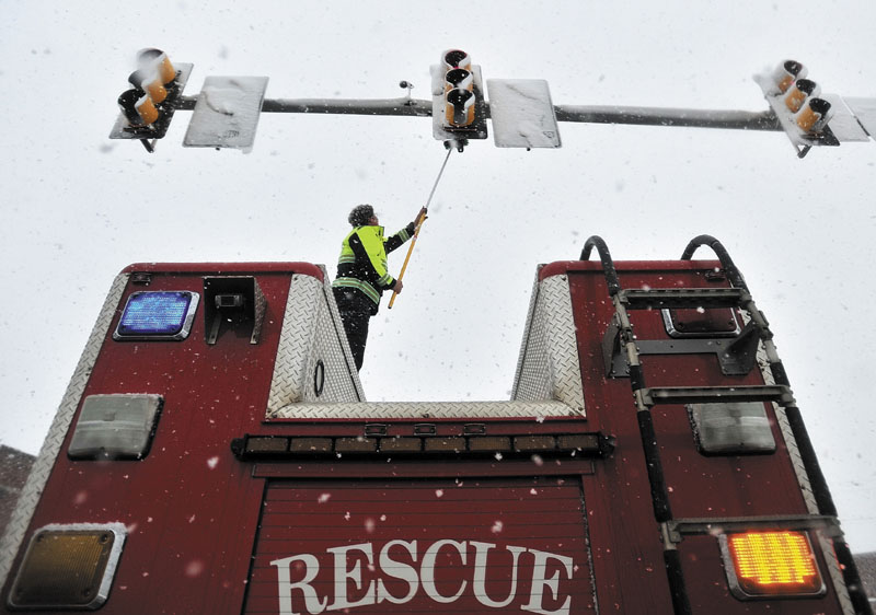 Snow keeps traffic lights from changing in Waterville